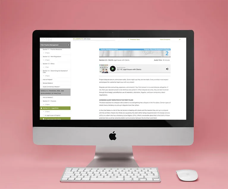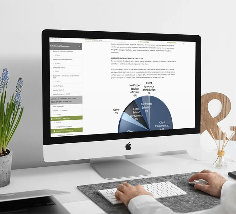 Reviewed and approved by NCARB, this study package ensures you are focusing on the material that truly matters for passing the CE exam. Membership gives you full access from any device, anywhere, through a beautifully designed online course portal, allowing you to study at your own pace and approach this challenging exam with confidence.